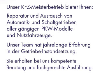 KFZ-Meisterbetrieb . Reparatur und Austausch von Automatik- und Schaltgetrieben aller gängigen PKW-Modelle und Nutzfahrzeuge.